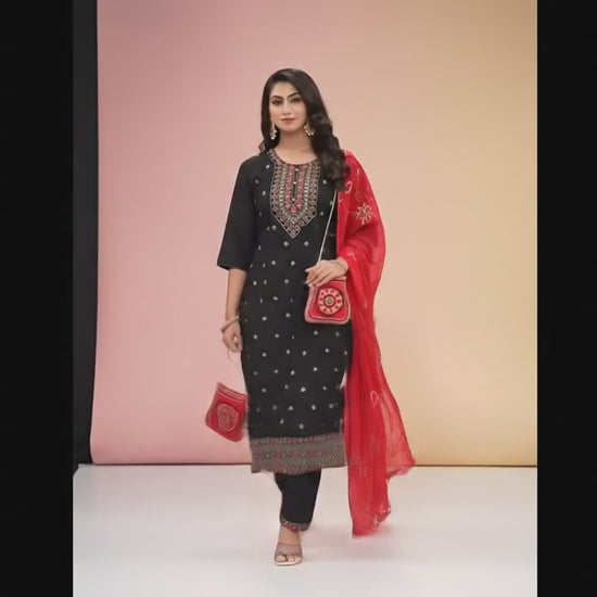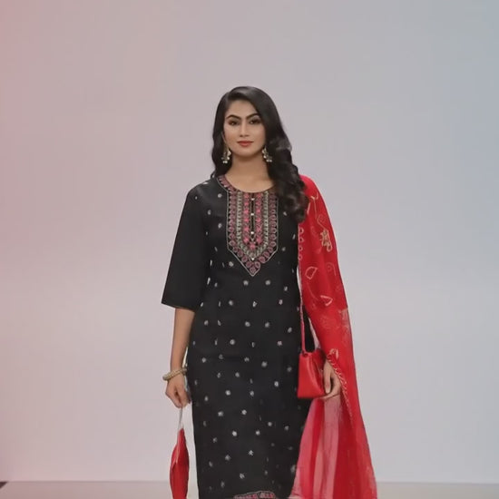 Redefine everyday fashion with this modern kurta set. Designed to suit all weather conditions, its soft breathable fabric makes it a perfect pick for summer wear, outdoor gatherings, and casual day-outs. The straight kurta with a chic neckline paired with trendy pants creates a look that’s both classy and contemporary. Pair it with accessories and you’re ready to shine!