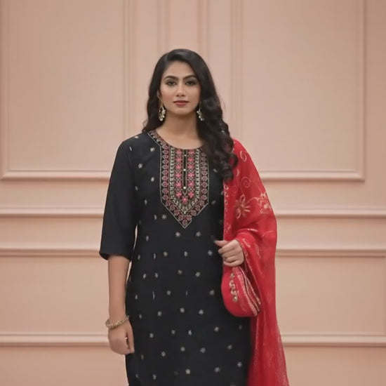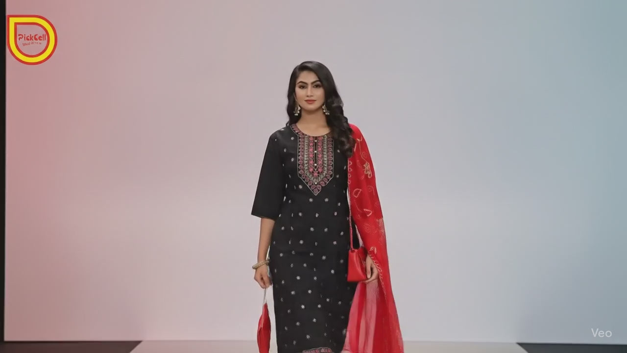 PickCell Embroidery Work Ghera Kurti Set with Bottom & Dupatta – Premium Women’s Ethnic Wear in Vichitra Fabric