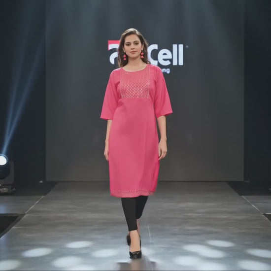 PickCell Kia Satin Kurti with Neck Work Elegant Party & Daily Wear for Women