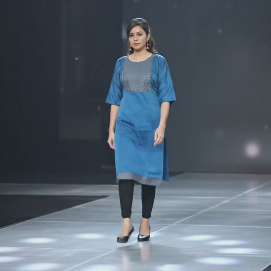 Step into effortless glamour with this statement kurta , your ultimate choice for both everyday wear and special occasions. Made from lightweight, skin-friendly fabric, it keeps you fresh even in long hours. The flattering straight-fit kurta with a classy neckline paired with trendy pants makes it a perfect outfit for summer outings, festive evenings, or office wear. Once you try it, youβll want it in every color!