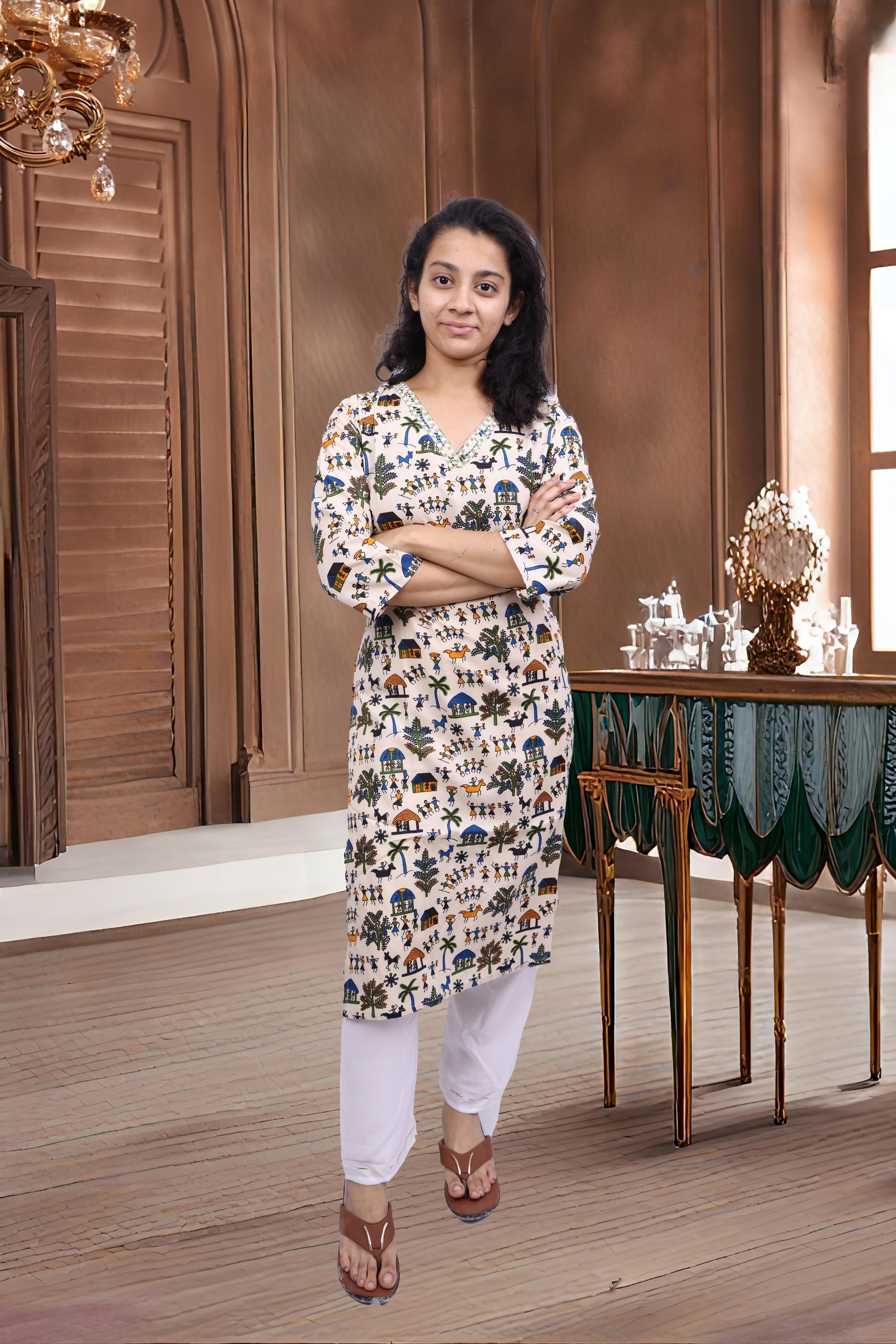 PickCell Printed Long Kurti β Poly Cotton Fabric