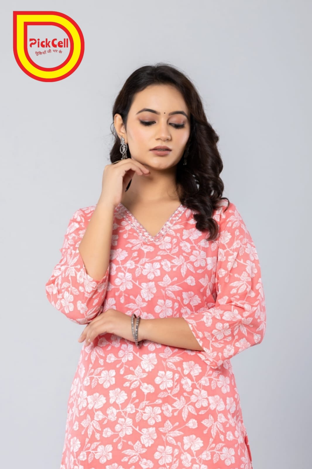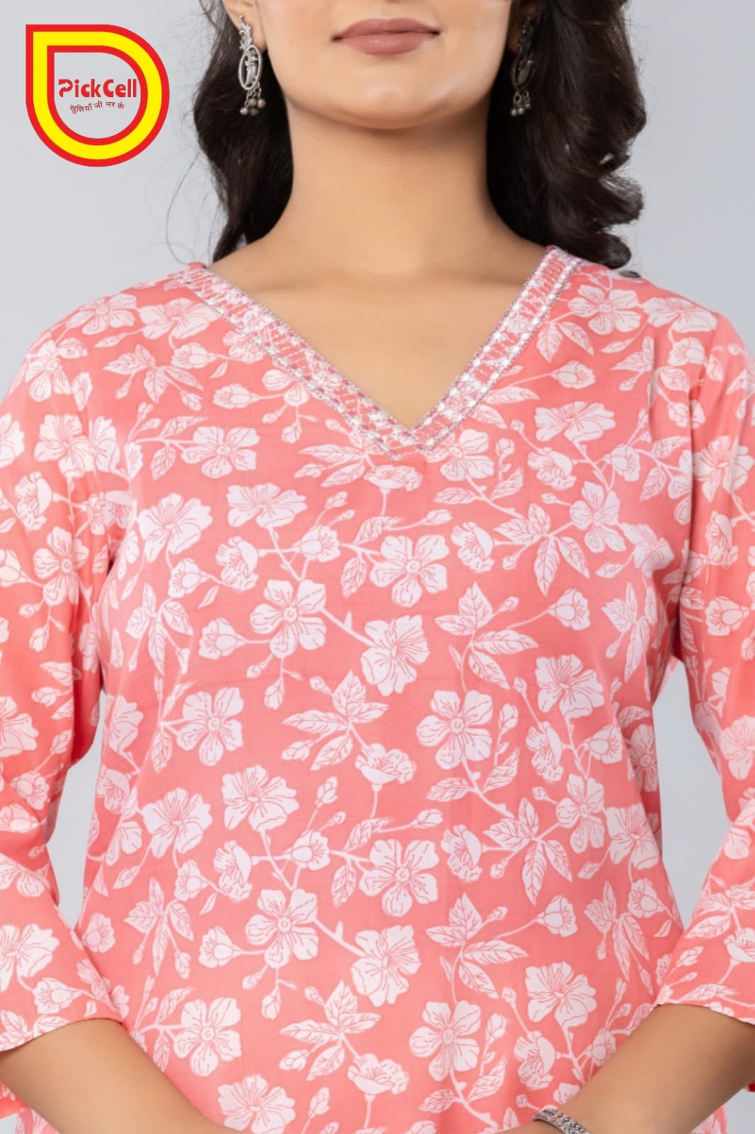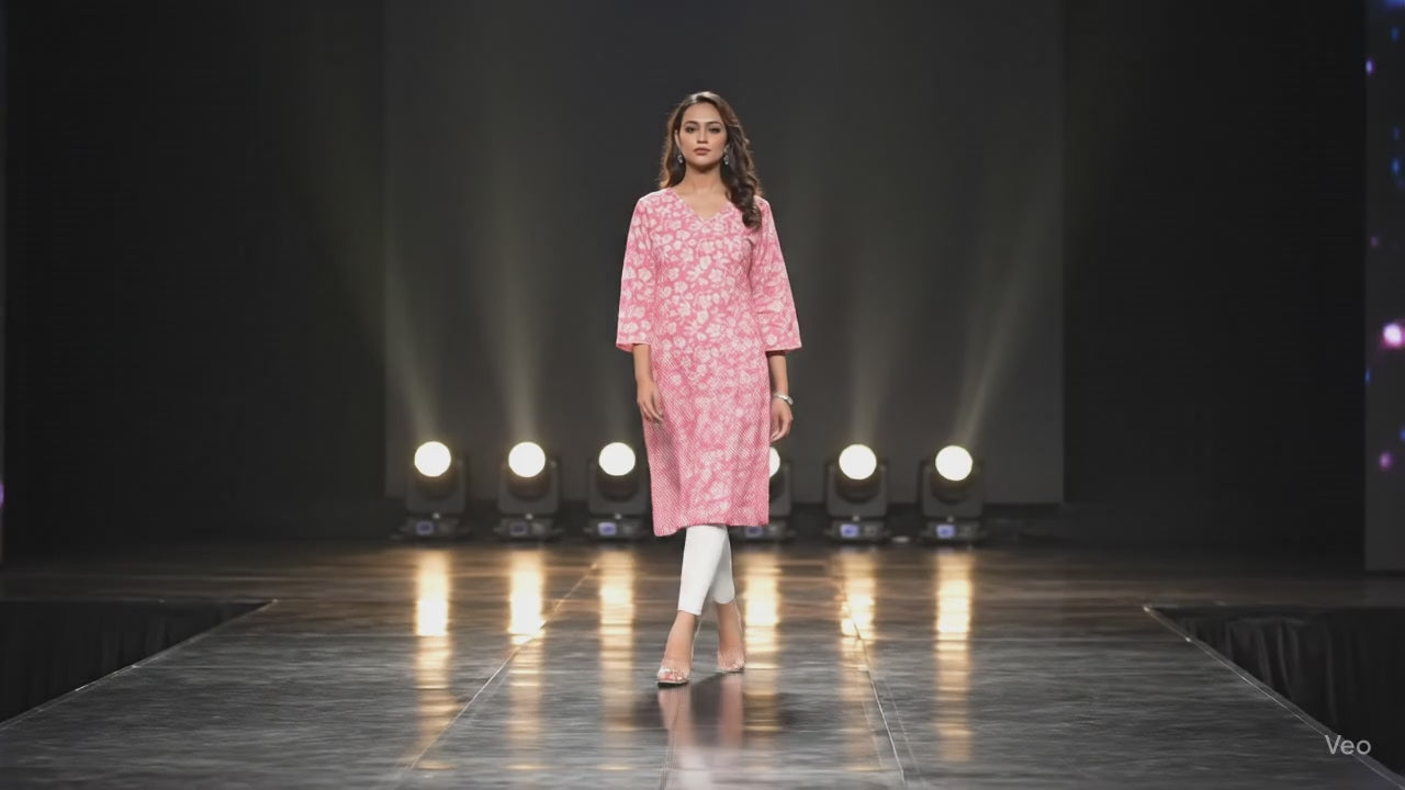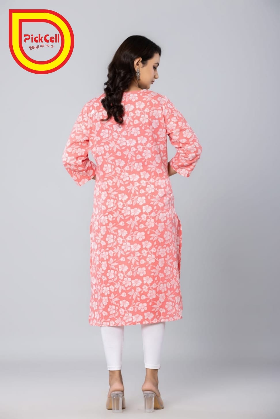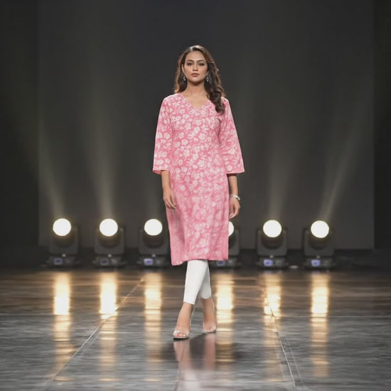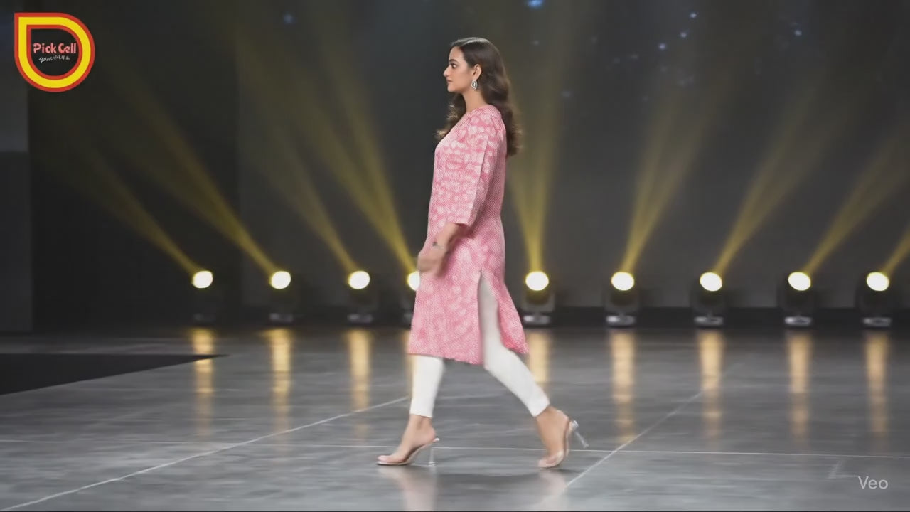 PickCell Printed Long Kurti β Poly Cotton Fabric (Pink)